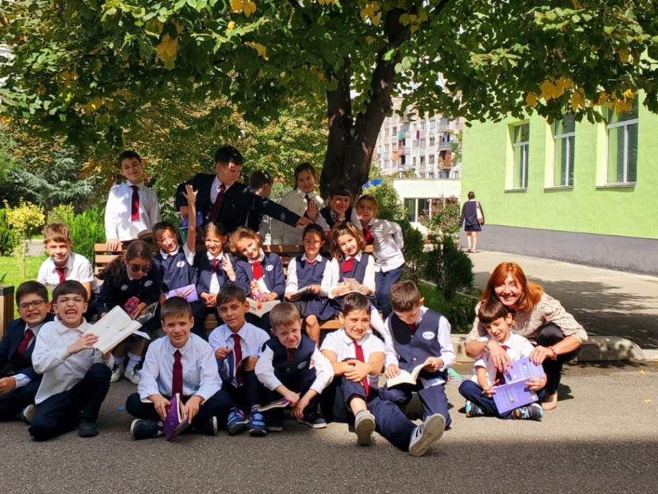 👧 🧑 ჩვენი სკოლის ეზოც ხშირად წიგნიერების გაკვეთილების ასპარეზია. 🌳 🌳