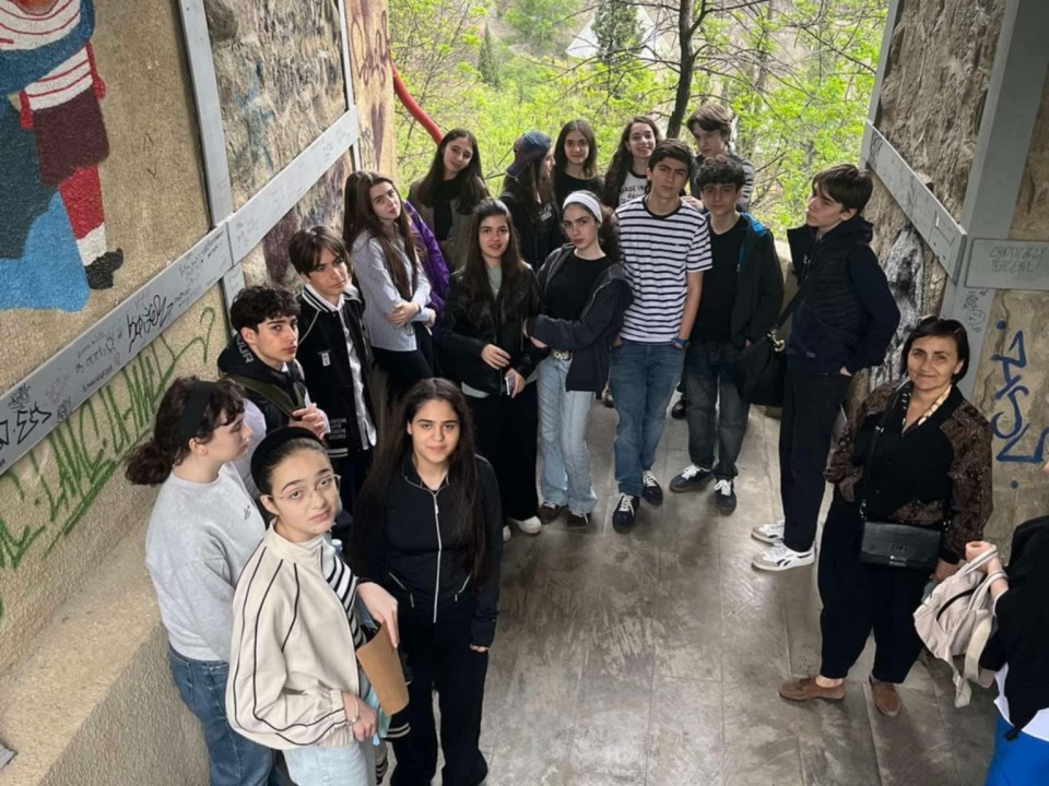 🧑 👧 მე-9² კლასის მოსწავლეები, მასწავლებელთან, ქეთინო მერებაშვილთან ერთად იმყოფებოდნენ გასვლით გაკვეთილზე.