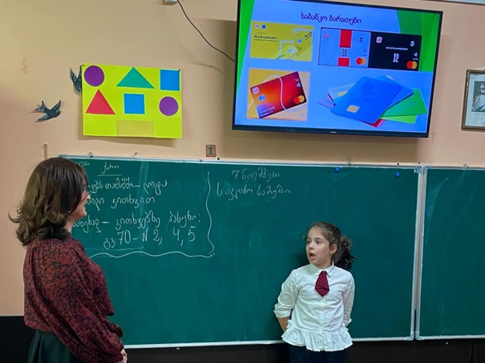 💰 💰 ქალბატონმა ნათიამ ბავშვებისთვის გასაგები ენით ისაუბრა საბანკო ოპერაციებზე. მოსწავლეები ინტერესით ისმენდნენ მათთვის "ახალ" ინფორმაციას, შეხვედრის დასასრულს სტუმარს დაუსვეს კითხვები.
