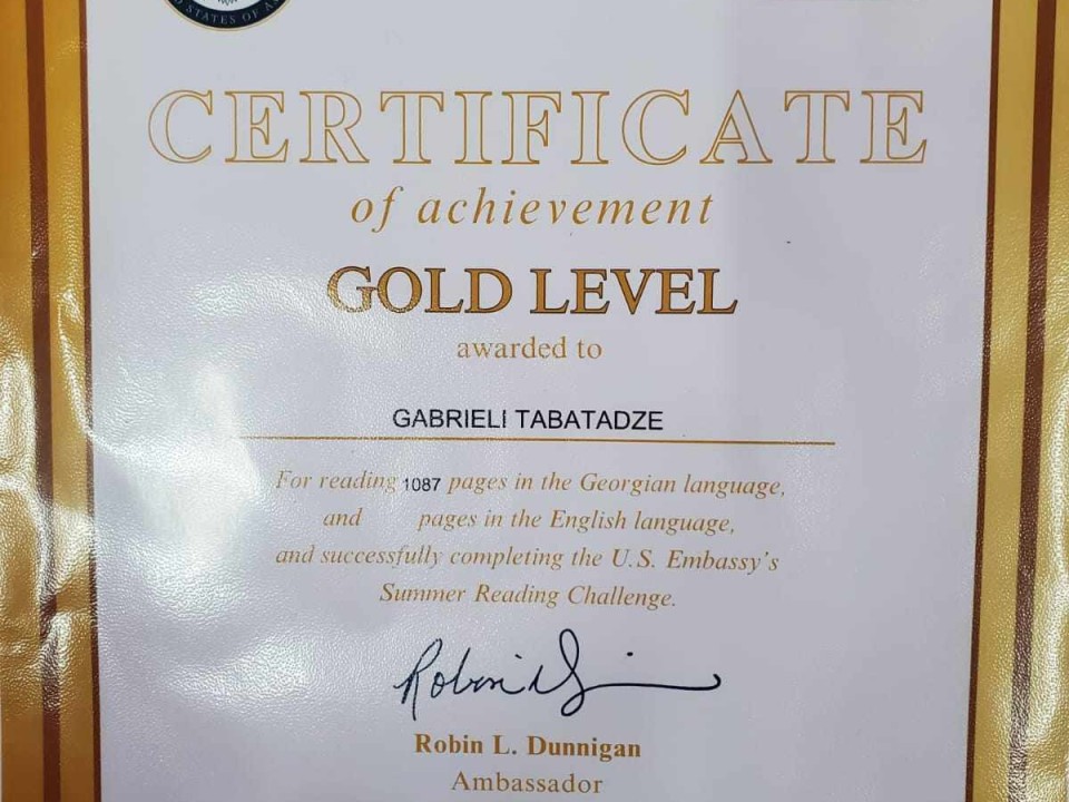 ზაფხულში გაბრიელი გამოეხმაურა ამერიკის საელჩოს კითხვაში გამოწვევის საზაფხულო პროგრამას და წაიკითხა სხვადასხვა წიგნი, სულ 1087 გვერდი, რისთვისაც ამერიკის საელჩომ დააჯილდოვა ოქროს სიგელით.