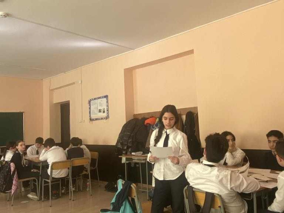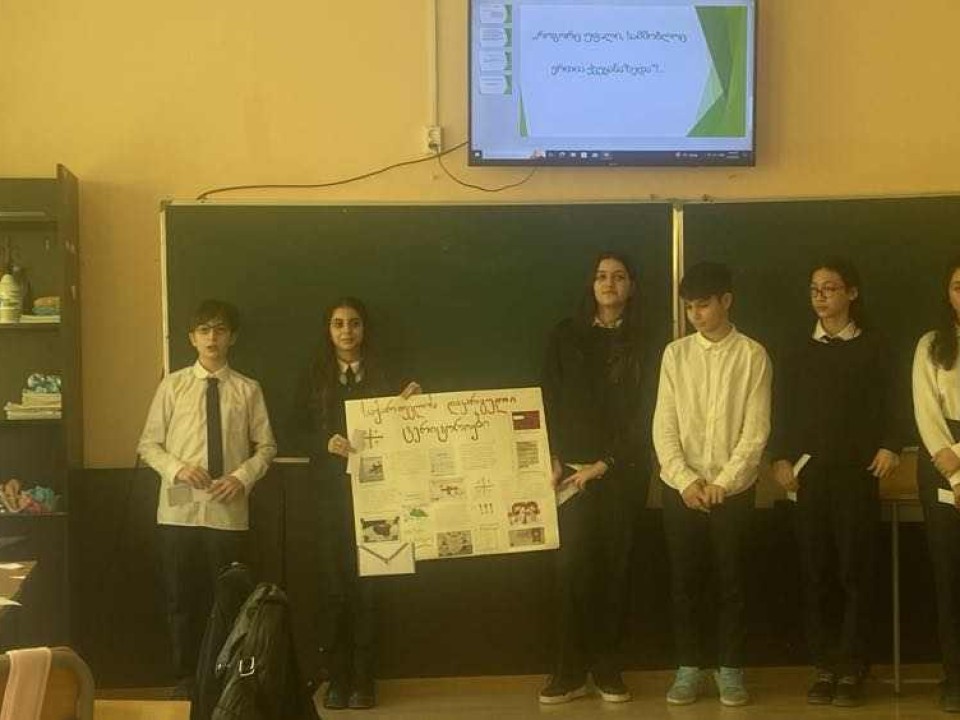 🌎 📘 17 თებერვალს მე-7ა კლასში ჩატარდა შემაჯამებელი პროექტი თემაზე: ,,როგორც უფალი, სამშობლოც ერთია ქვეყანაზედა".