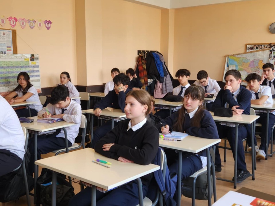 🗣 🗣 სტუმარი ესაუბრა ბავშვებს სკოლაში გატარებულ წლებზე, დაუღალავ შრომაზე და წარმატებულ სტუდენტობაზე. მის სპეციალობაზე, სწორ არჩევანზე და უპასუხა უამრავ კითხვას.
