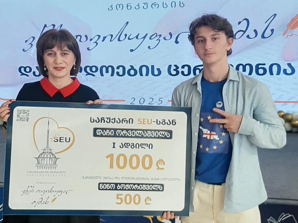 🧑 👩🏻 გიზიარებთ ძალიან მნიშვნელოვან და სასიხარულო ამბავს. ჩვენი სკოლის მეთორმეტე კლასელის, დაჩი ორველაშვილის და ქართული ენის და ლიტერატურის კათედრის თავმჯდომარის - ნინო ბოჭორიშვილის, ერთობლივ წარმატებას.