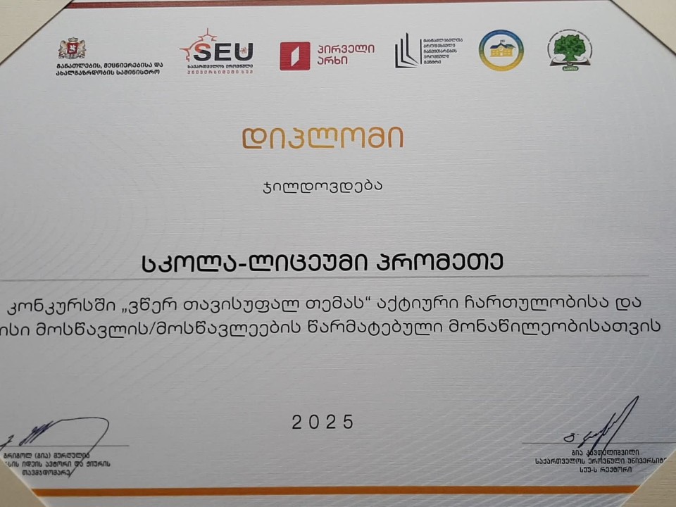 ვულოცავ სკოლა - ლიცეუმ პრომეთეს" ამ  დიდ  წარმატებას!❤❤